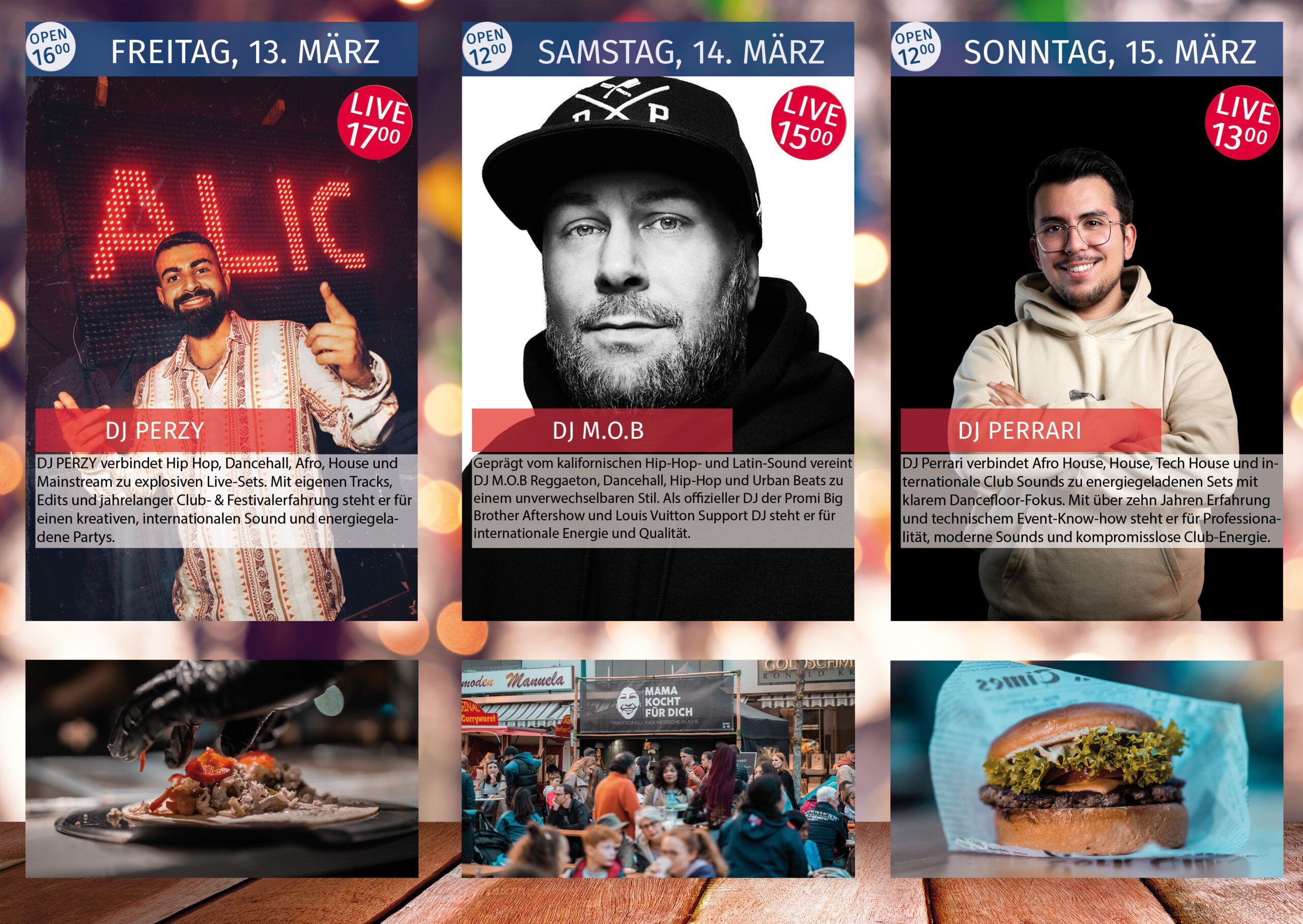 Hast du ein Händchen für Getränke und liebst die lebhafte Atmosphäre von Festivals? Dann bist du bei uns genau richtig! Für unser Street Food & Music Festival suchen wir begeisterte Mitarbeiter (m/w/d), die unser Team in verschiedenen Bereichen unterstützen.