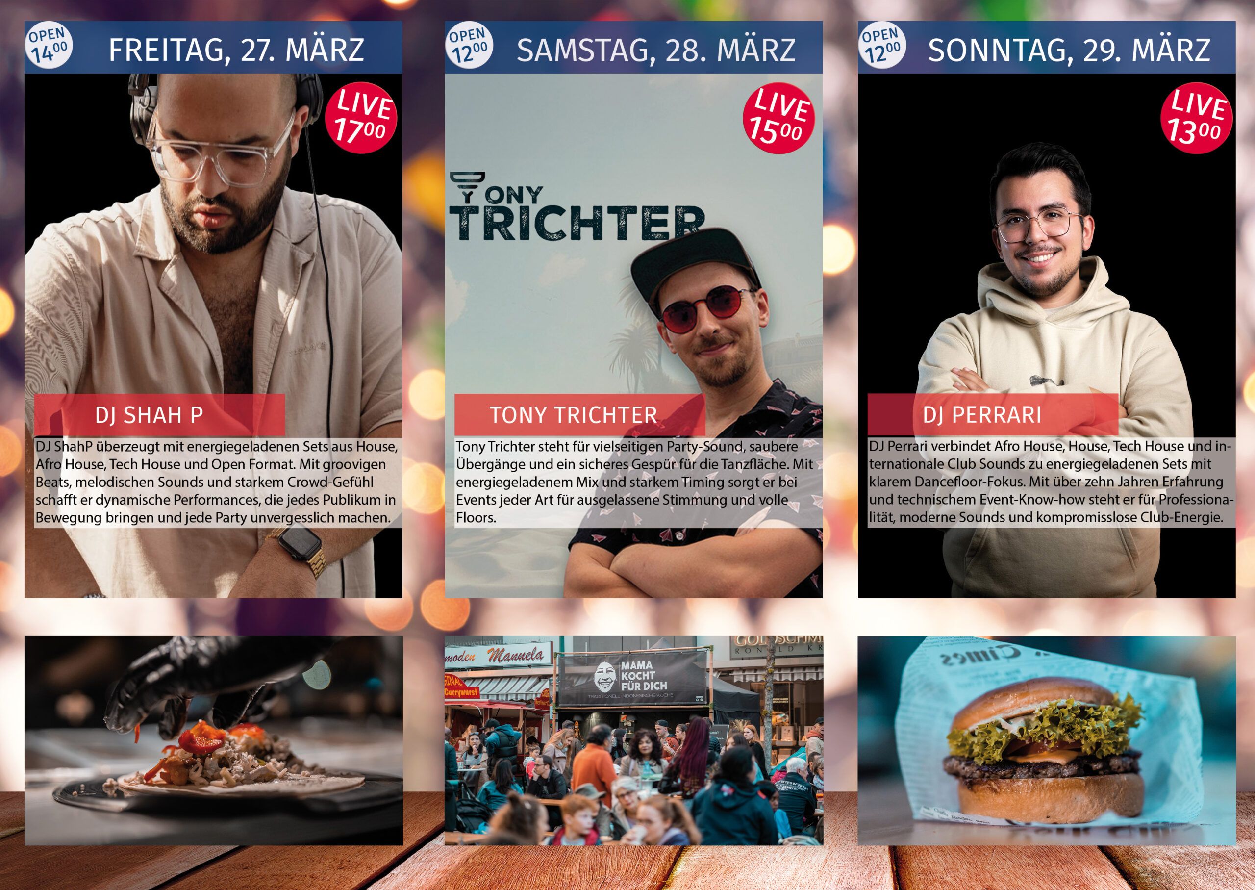 „Ein tolles Erlebnis bei den Street Food & Music Festivals! Perfekt organisiert, mit einem engagierten Team, das immer bereit ist, bei Bedarf zu helfen. Herzlichen Dank! Wir freuen uns auf weitere gemeinsame Festivals.“